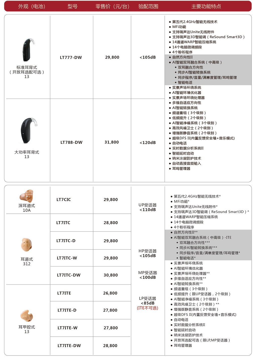 一、瑞聲達(dá)聆客3代7耳背式助聽器價(jià)格表: